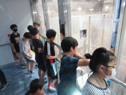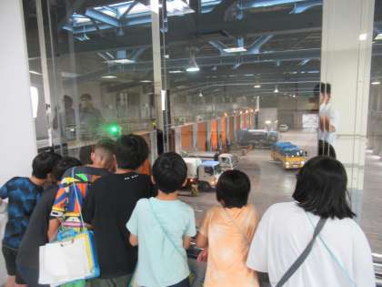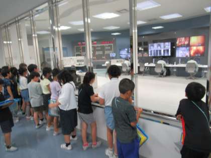 浄水場の次は、クリーンセンターに向かいました。ゴミ収集車がゴミを持ってくる場面を見ることができました。滑川市の車は青いなど、地区によって収集車の色が違うことや年間に収集するごみの量を学びました。