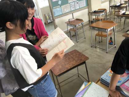 子供たちはお互いの自主学習を見せ合い、勉強の仕方を学びあっています。