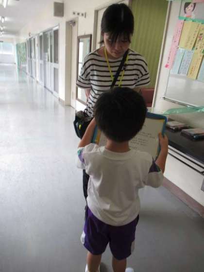 休み時間に、保健室の先生にインタビューをしました。練習したことをいかして、がんばって話しかけることができました。