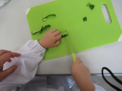 ミニトマトを使って、ピザを作りました。自分たちで準備し、調理したピザはとてもおいしく、笑顔でほおばりました。