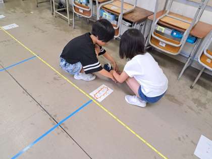 理科「風やゴムのはたらき」で学習したことを生かして、ゴールインゲームに挑戦しました。
