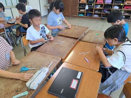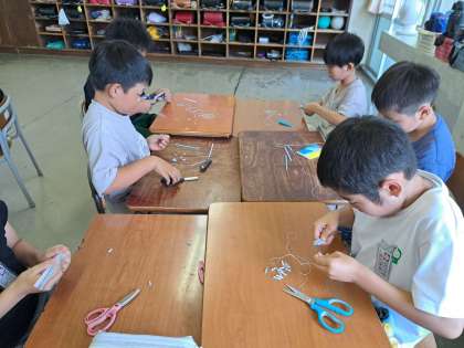 ブレスレットやネックレス、ヘアーバンドなど、作りたい物を考えて、デザインしました。細かい作業でしたが、みんな夢中になって作っていました。