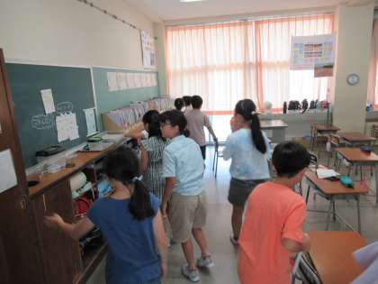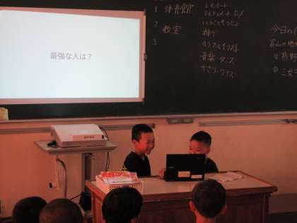 運動後は、教室に戻ってのイベントです。お笑いを担当する係のお笑いライブや、イラスト係が隠したイラスト探しゲームを行いました。