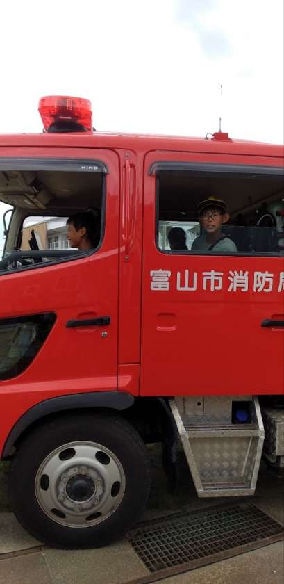 参加を希望した人で、呉羽消防署に行き、少年消防クラブの防火のつどいに参加しました。