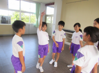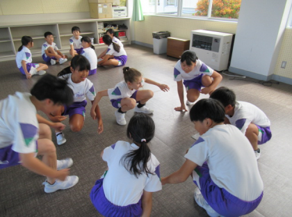体育で表現運動をしました。自分たちの素直な感情を身体で表現しようとしていました。