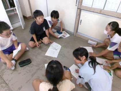 4、5年合同で7月から宿泊学習の話し合いをしてきました。繰り返すうちに、みんなで声を掛け合う姿がたくさん見られるようになりました。めあて「自分たちで本当の楽しさをつくる」を目指して張り切っています。