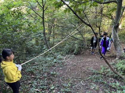 ワイルド遊びでは、思い思いの遊具をつくりました。
