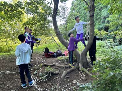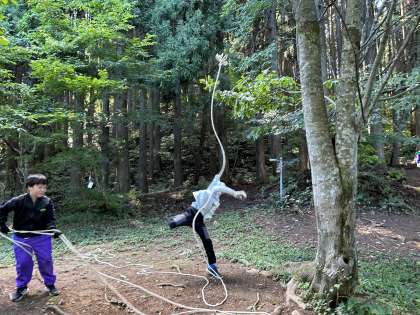ブランコや綱渡り等、作れそうなものを考えて作業を進めました。