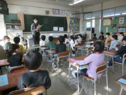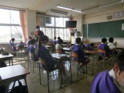 手洗い・うがいを済ませ、各教室で、学校生活のスタートです。