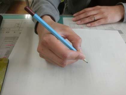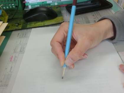 1ねんせいのみなさん、ごかぞくのみなさま、いかがおすごしですか。1ねんせいのみなさんは、これから、「しょしゃ」のきょうかしょをよういして、まず、6ページと7ページをみてみましょう。6ページと7ページには「えんぴつの もちかた」、そして、9ページには、「ての うごかしかた」のてほんがかいてあります。きょうかしょのまねをして、えんぴつをただしくもち、きょうかしょの8ページのせんをなぞってみましょう。うえとしたのがぞうは、たんにんのせんせいのてです。1ねんせいのみなさん、せんせいにまけないくらい、えんぴつをじょうずにもてるようになりましょう。ごかぞくのみなさま、おうえん、よろしくおねがいします。