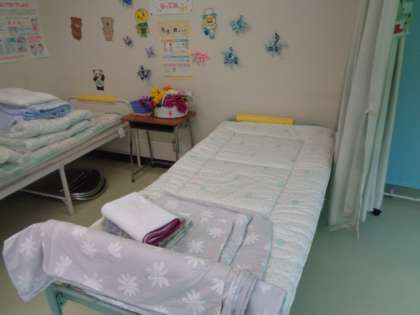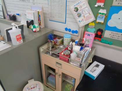 このへやにいるせんせいがようすをみて、やさしくねつをはかってくれたり、けがのてあてをしてくれたりしてくれます。