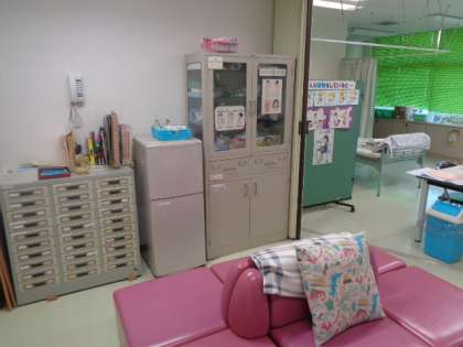 しょうどくえきやたいおんけいがあったり、そふぁやべっとがあってやすんだりすることもできますよ。