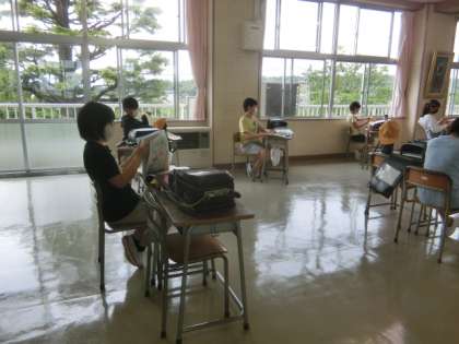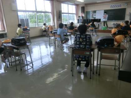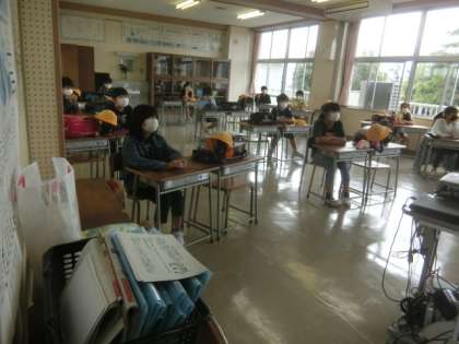6年生は、トイレ工事の関係で、音楽室を教室として使っています。広々として、見晴らしがよいので、快適だそうです。