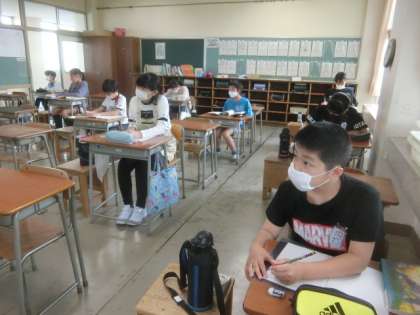 久々の授業。まだ真新しい教科書を使い、学習課題を真新しいノートに書きました。