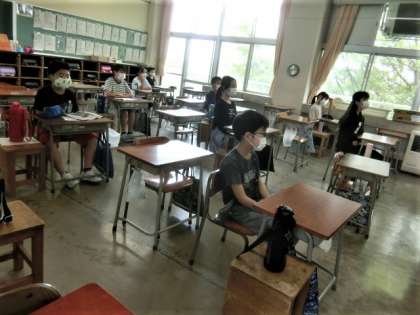 午後の5年生教室。背筋を伸ばして、学習開始。