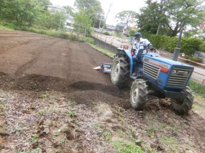 見守り隊の隊長さんが、今年も学校前の農園を耕してくださいました。心よりお礼申し上げます。上から、耕耘前、耕耘中、耕耘後です。