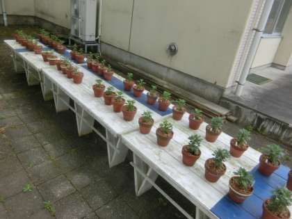 菊花会の皆様が、このように、菊の苗を鉢に植えてくださいました。