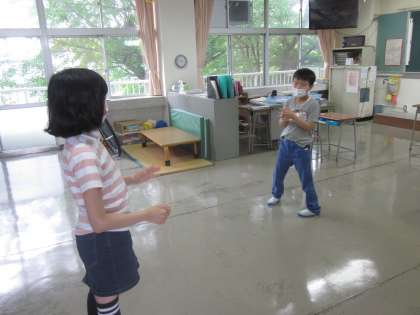 分散登校2日目も、ソーシャルディスタンスをしっかりとっています。