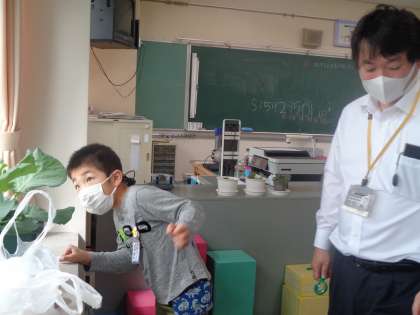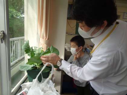 プランターで育てている新鮮なキャベツを食べて、おひさま級のアオムシは順調に成長しています。そんな今朝、キャベツの葉の隙間から小さな虫が出てきました。アオムシに寄生するというアオムシサムライコマユバチのようです。アオムシを助けようと真剣です。