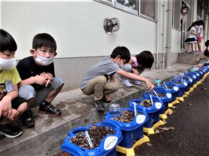 「ぼく(わたし)が水をあげたから芽が出たんだよ。」と自信満々の1年生。1年生の話には本当に魅了されます。