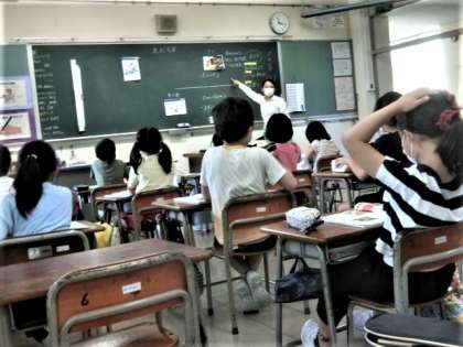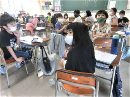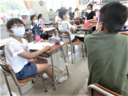 授業中。静かに考えたり笑顔で話したり、メリハリのある学習をしています。
