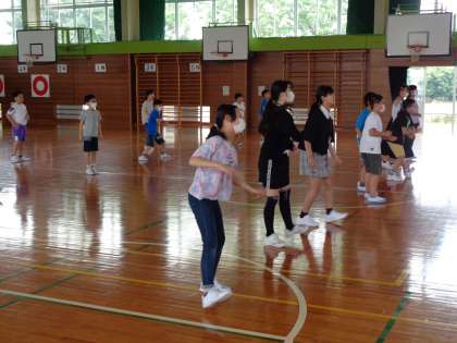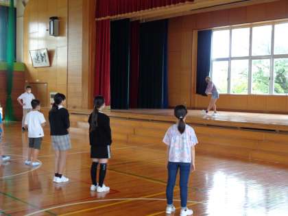 音を体で表現しました。8拍のリズムで、一人一人が考えた動きを発表し合い、友達の考えた動きをみんなでやってみました。一人一人の個性が発揮されて、楽しい表現の時間でした。