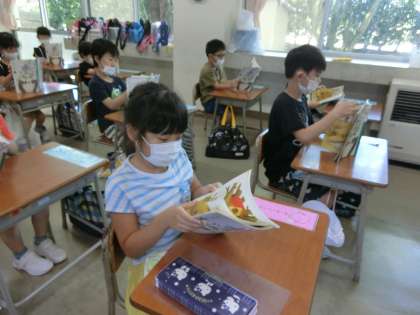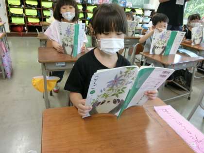 教科書を持つ手が可愛い1年生。一生懸命、目で字を追いかけています。