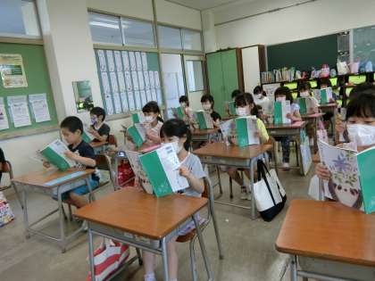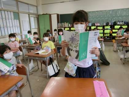 1年生の国語科。「ふきのとう」の音読。今日は、間の取り方について学びました。