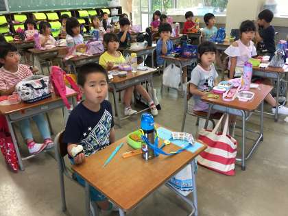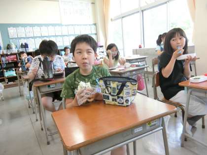 連日の昼食準備、ありがとうございました。明日(6月10日)から簡易給食開始。お子さんには、引き続き水筒を持たせてあげてください。