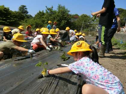 6月10日(水)1年生 さつまいもの苗を植える3