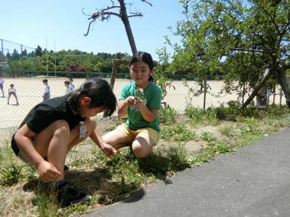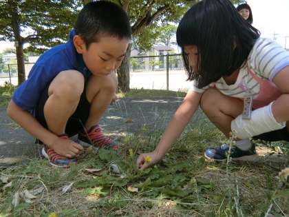 国語科で、説明文「たんぽぽのちえ」を読んでいるからでしょうか。休憩時間に、草花とふれあう2年生の姿がみられました。