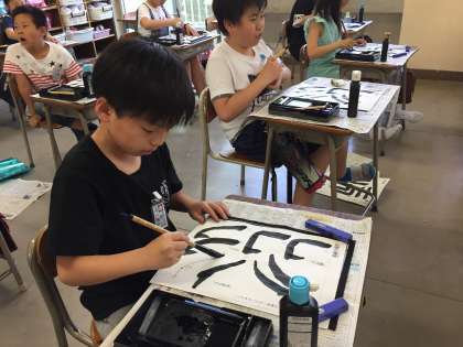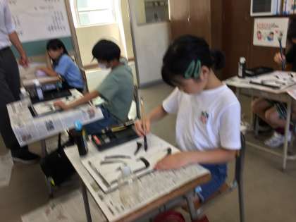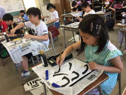6月10日(水)4年生 毛筆の「はね」「はらい」を学ぶ