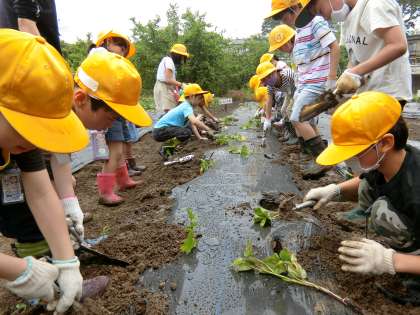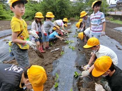 2年生の農園作業。手際のよさに成長が感じられます。