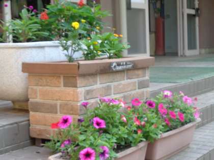今朝はよい天気でした。日差しを受けて、児童玄関に置いてあるプランターの花が気持ちよさそうに咲いていました。