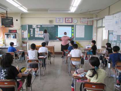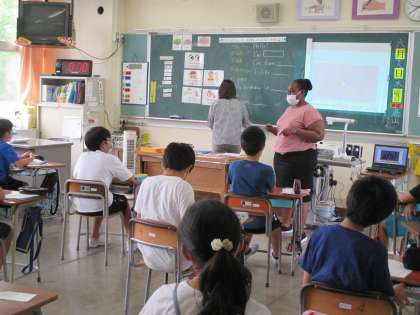ALT、英語専科の先生と一緒に、英語で自己紹介をしました。