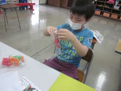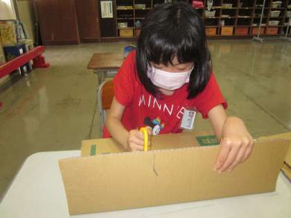 図画工作科の学習の様子。楽しみながらも真剣に取り組んでいます。