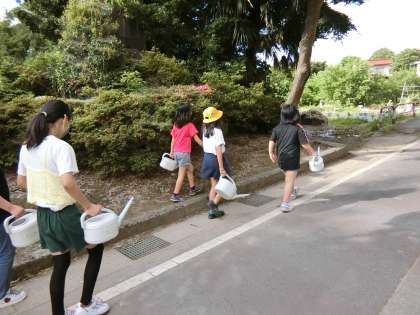 今日も、無事登校しました。早速、水やりに向かう子供たち。