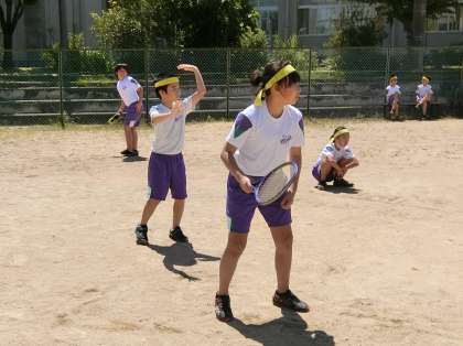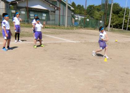 2時間目。色団対抗で、ラケットベースボールを楽しみました。