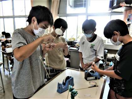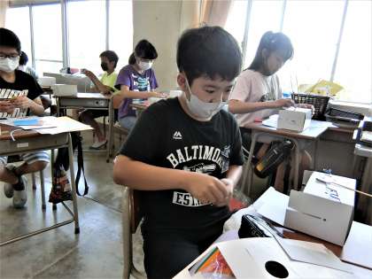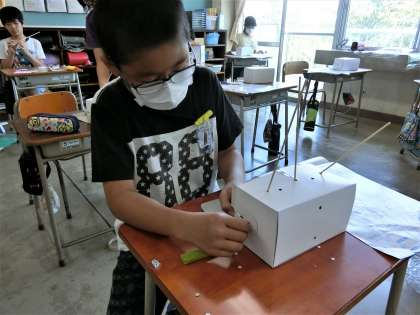 6年生は、クランクの仕組みを生かす工作を楽しんでいます。