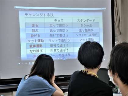 子供たちが下校した後、子供たちが行う体力つくり活動について、教職員が研修する場を設けました。