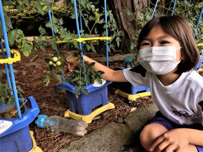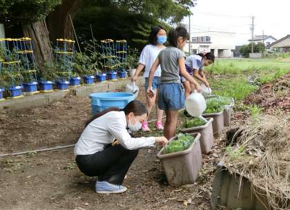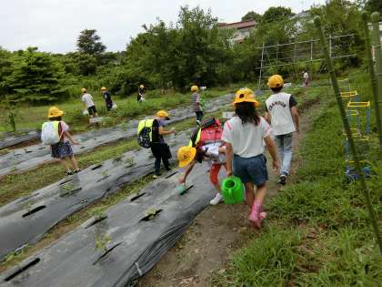 朝からにぎやかな学校農園。収穫の日が楽しみ・・・なのだそうです。