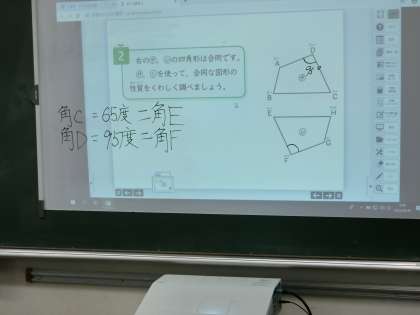 5年生の算数科の学習。合同の定義などについて学んでいます。