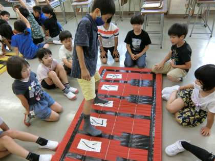 6月30日(火)2年生 マットの鍵盤で「かっこう」を奏でる