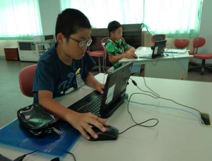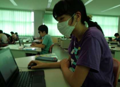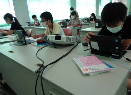 6年生は、コンピュータ室で情報収集中。国語科「私たちにできること」の学習を充実させるためのプロセスです。