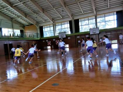 45分間、競い合い協力し合いながら多様な運動に取り組んでいます。