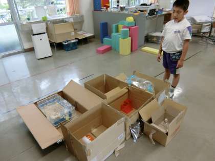 段ボールで、ハムスターのハム太郎の遊び場を広げました。