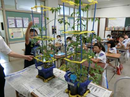7月6日(月)2年生 ミニトマトの成長について調べる