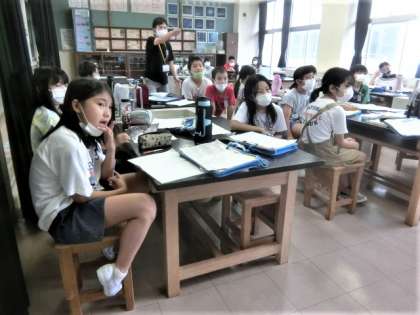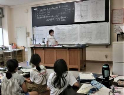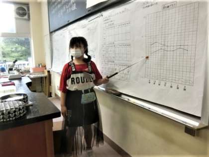 理科室で学ぶ4年生。雨の日の気温の変化について学んでいます。