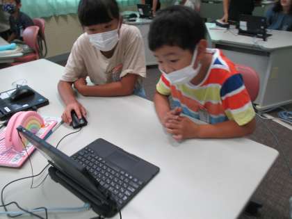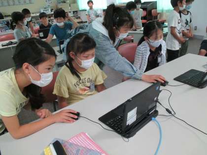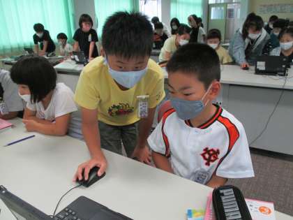 パソコンを使っての生活アンケート。自分の分が終わってから、2年生の分を手伝いました。優しく聞き取りながら、パソコンを操作する姿がとても素敵でした。