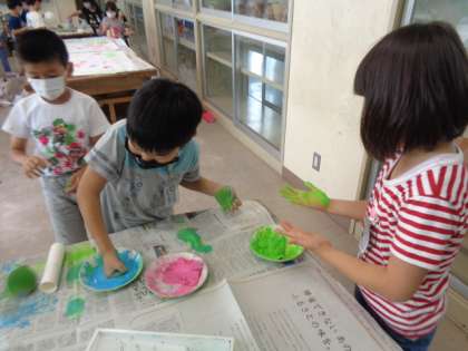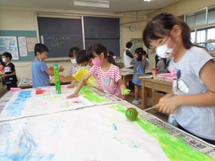 7月14日(火)1年生 図画工作科「ぺったんころころ」(その2)